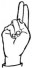 На ћирилици написано ЉУБИЦА ЈОВАНЧЕВИЋ састоји се из 16 слова [?]. Исписано ћириличном једноручном азбуком за глувонеме: